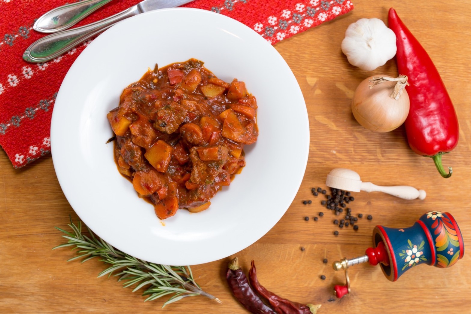 Goulash is a soup or stew of meat and vegetables, seasoned with paprika and other spices which originates from Hungary in Europe. There is no one dish as EVEN in Hungary every other housewife or chef has her/his own way of cooking it by adding or omitting some of the ingredients, or changing something in the preparation process, however they would all call their gulyás the most authentic.